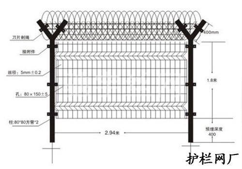 機(jī)場圍界又稱作“Y型安全防御護(hù)網(wǎng)”,是由V型支架立柱加強(qiáng)型焊接片網(wǎng),安全防盜連接件和熱鍍鋅刀片刺網(wǎng)組成強(qiáng)度和安全防御性級別很高。被廣泛應(yīng)用在機(jī)場,軍事基地等高安全場所。