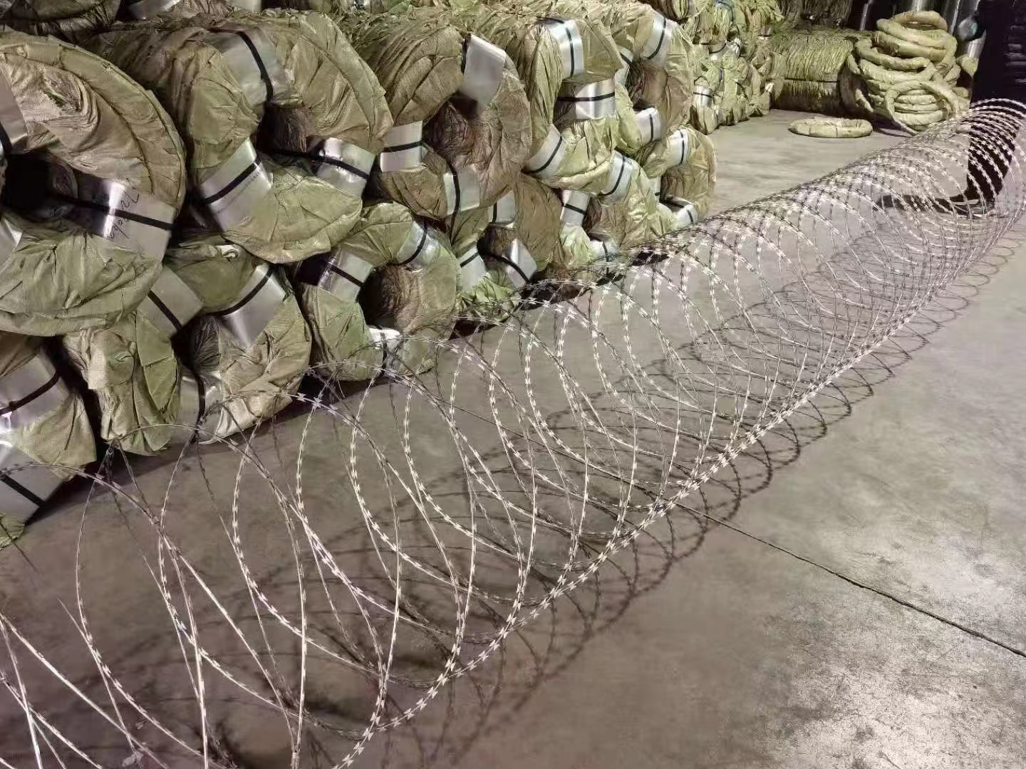 在壓縮過程中也許會有個別刺絲滾籠內部接頭崩開的現象,所以拆開是一點要注意。其次在刺絲滾籠安裝前一定要確認刺絲滾籠安裝基礎的牢固性,鐵路上的刺絲滾籠有的安裝在水泥立柱上,有的安裝在金屬護欄網頂部,不管是水泥立柱還是金屬護欄網我們一定要確保他們安裝牢固,否則容易對刺絲滾籠安裝人員造成人身傷害。