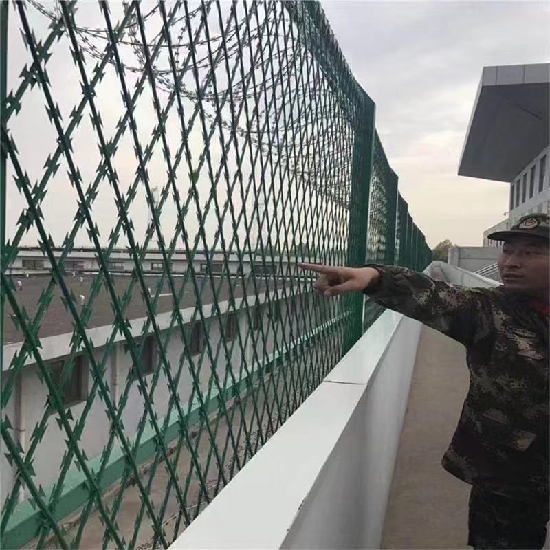 監(jiān)獄巡邏道防護(hù)網(wǎng)、監(jiān)獄墻上防護(hù)網(wǎng)、看守所外墻圍網(wǎng)