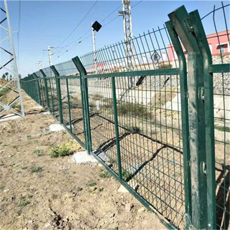 鐵路防護(hù)柵欄用途:高速公路、鐵路垃圾填埋場(chǎng)試驗(yàn)場(chǎng)地、鐵路封閉、高速公路護(hù)欄、開發(fā)區(qū)圍界 場(chǎng)區(qū)圍網(wǎng)、體育場(chǎng)圍欄、小區(qū)防護(hù)。