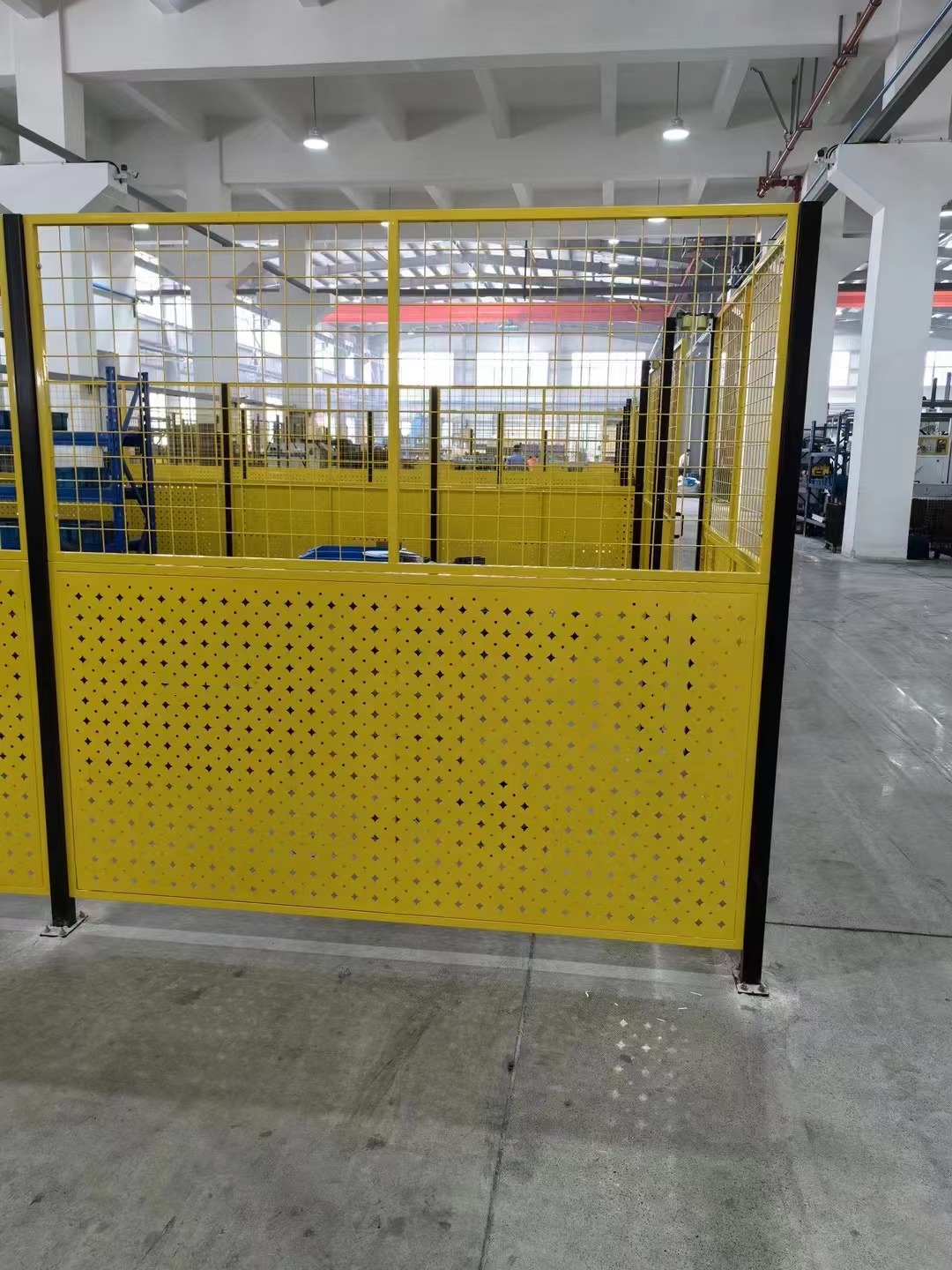 車間隔離護(hù)欄網(wǎng)的網(wǎng)體采用卡扣式鋼架灌縫網(wǎng)格,有高度的透明度,不會(huì)對(duì)車間內(nèi)部的視線造成影響,減輕視覺(jué)壓力,使得車間的空間感覺(jué)更加舒適。