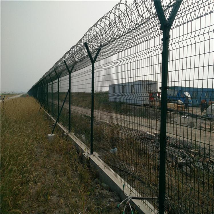 機(jī)場(chǎng)護(hù)欄網(wǎng)又稱作“V型安全防御護(hù)網(wǎng)”,由Y型支架立拄,加強(qiáng)型焊接網(wǎng),安全防盜連接件和熱鍍鋅刀片刺網(wǎng)組成,是強(qiáng)度和安全防御性